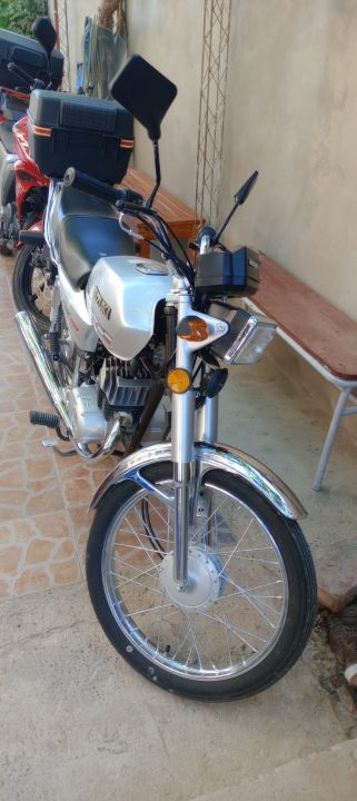 tiene como agregado mataperro especialmente diseñado para esta moto, y parabriza -