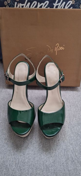 Gran oportunidad, sandalias acharoladas en verde, negro y blanco nro. 40