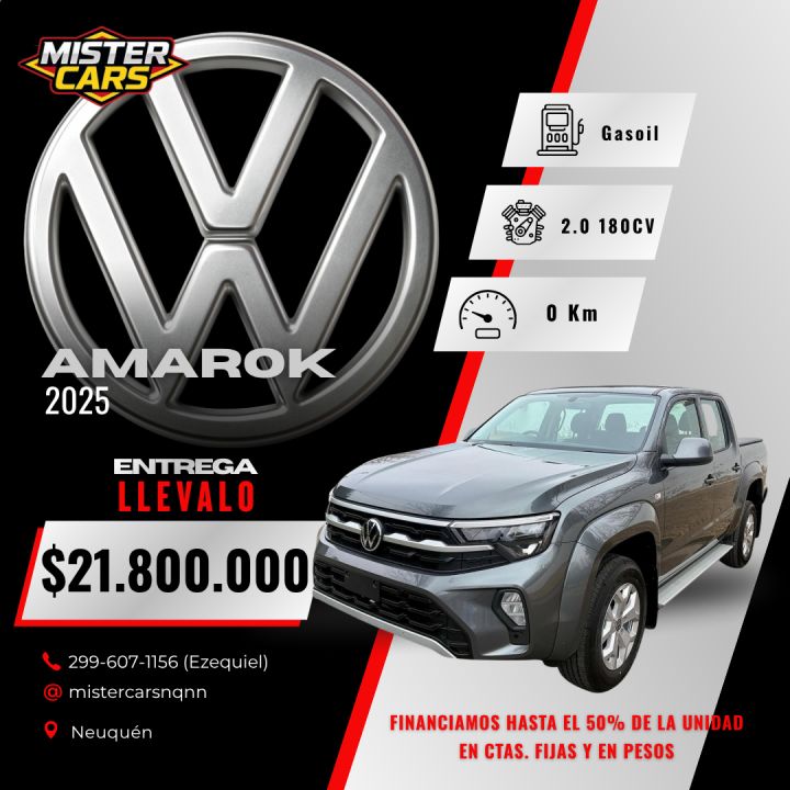 Volkswagen Amarok Trendline 2.0 M/T 2025 0KM!!!! • 180 CV – Potencia equilibrada, estilo y utilidad