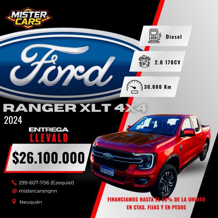 La Ranger XLT 2024 combina fuerza, suavidad de manejo y tecnología de última generación. Moderna, robusta y con un motor que sorprende por respuesta y eficiencia. Ideal para uso diario, viajes largos y trabajo liviano/medio.