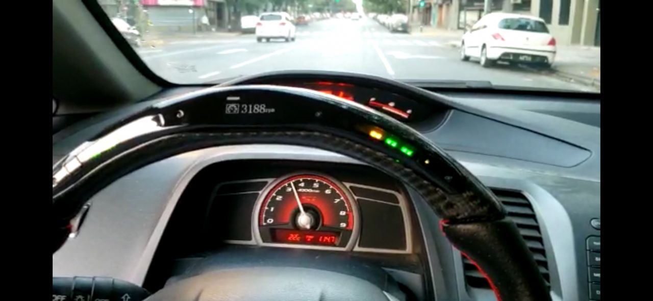 Volante deportivo de fibra de carbono con información por Bluetooth con conexión de modulo al puerto OBD2 para Honda New Civic.
