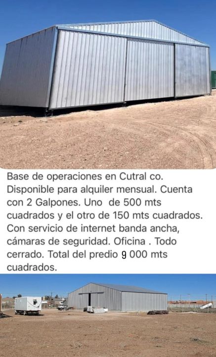 Parque industrial Cutral Co. Lote cerrado de 9.000 mts cuadrados. Internet banda ancha, cámaras de seguridad, oficina, 2 galpones , rampa de lavado para vehículos .