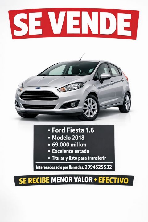 Ford Fiesta 1.6 2018. Excelente estado. 69.000 kms. Listo para trasferir