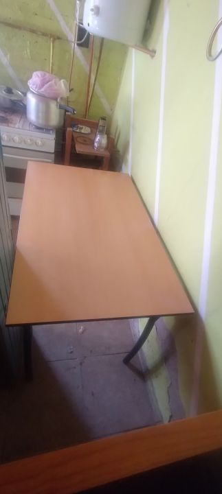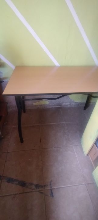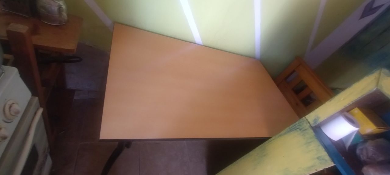 *1 Mesa madera melamina y patas de caño de 1.20mts largo y 70 cm ancho x 76 cm alto.