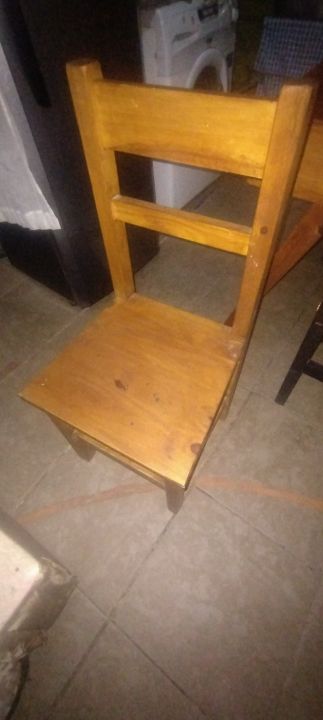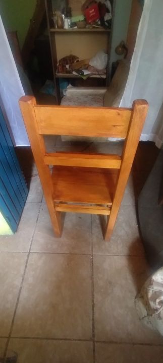 * 2 Sillas de pino de 44 cm alto, espaldar 90 cm alto, base 40 x 36 cm.