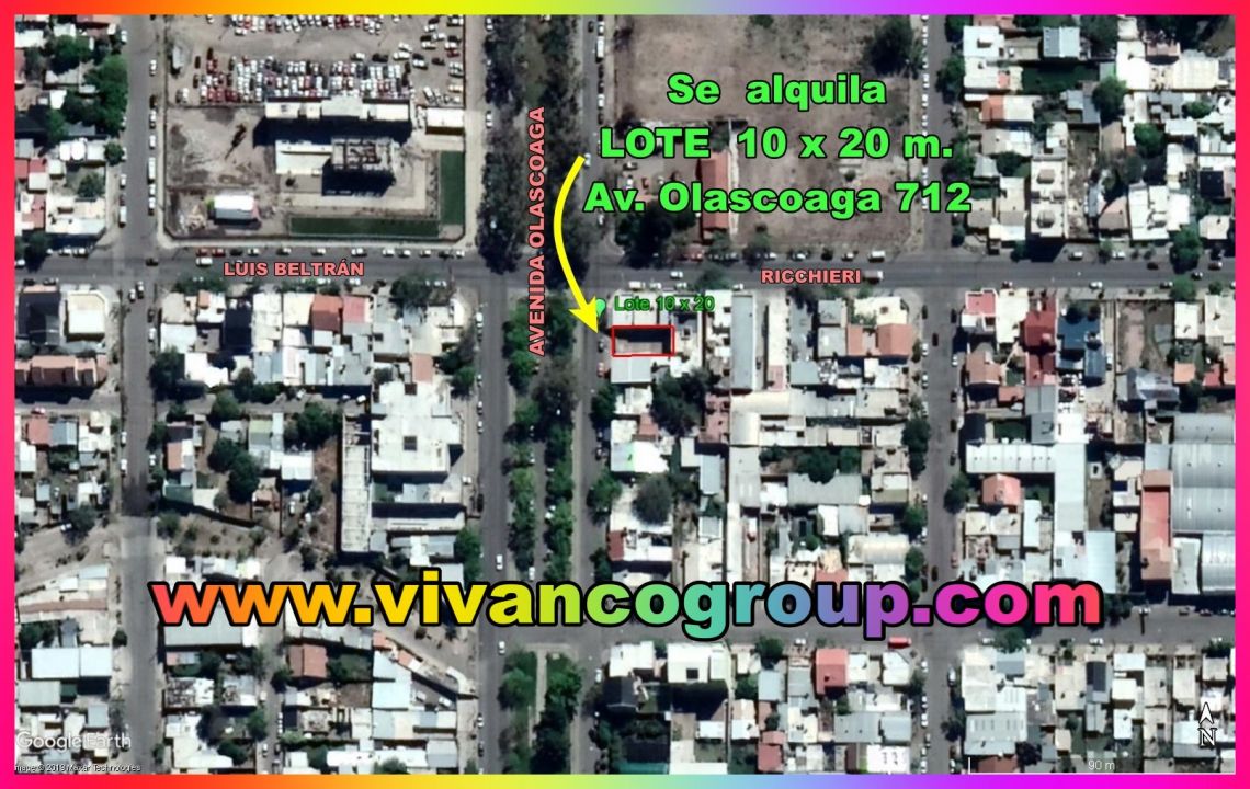 VIVANCO INMOBILIARIA alquila Lote baldío de 200 m2. en Av. Olascoaga al 712 casi Ricchieri en Neuquén capital.