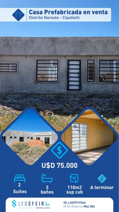Venta Casa Prefabricada a Terminar - 2 Dormi - Distrito Noreste - Cipolletti